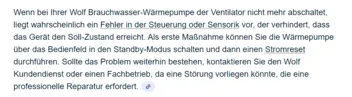 Der Installateur weiß vorerst keine Lösung da es sich anscheinend um ein technisches Problem handelt,dem Wolf Support (Kundendienst)