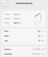 Heizkörper 1 in Raum 1 wird mit 60‘C warmen Wasser durchlaufen