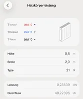Der doppelt so große Heizkörper in Raum 2 nur mit 30‘C warmen Wasser