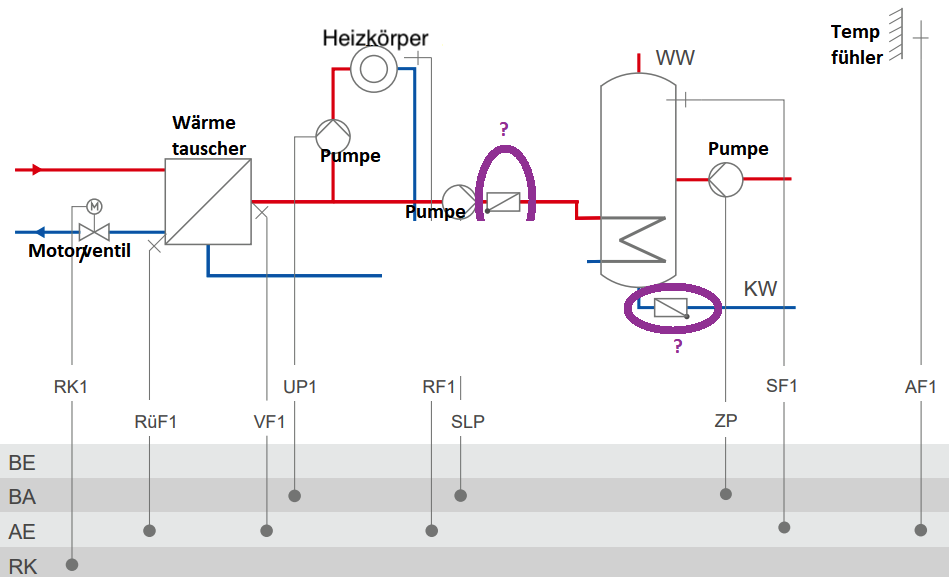 Mein Ziel wäre, dass der Heizkreis nur aktiv wird, wenn tatsächlich eine Raumtemperaturanforderung vorliegt, und bei keiner Anforderung wieder abschaltet. Die Anlage sollte also, wenn weder Heizung noch Warmwasser benötigt werden, quasi in einen Ruhezustand fallen.