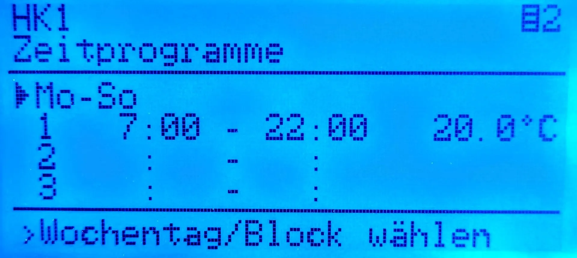 - Nun gibt es unter Heizkreis 1 Zeit Programme die Einstellung, Mo-So 8-22 Uhr und 20°. Auf was bezieht sich die Einstellung 20°? Ich habe festgestellt, dass bei dieser Einstellung die Heizkörper nicht warm genug werden! Erst wenn ich diese auf 25° erhöhe, wird's warm!?